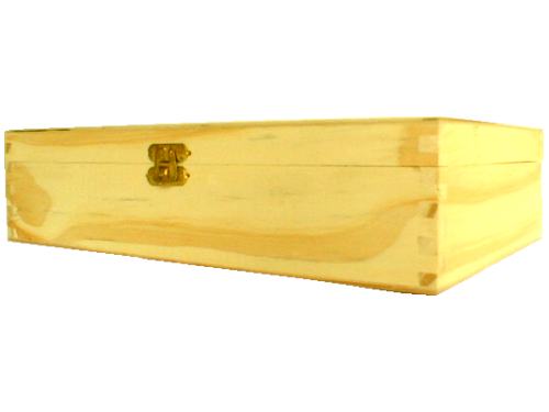 Caja en pino malletada con bisagras y broche , y una division al medio, ideal para guardar juegos de ajedrez o damas