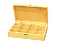 Caja en pino malletada con vidrio y 9 divisiones, para 9 te.
